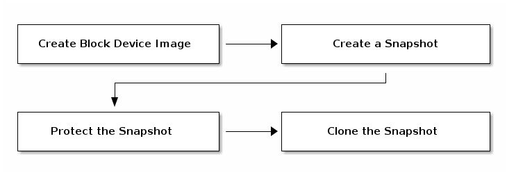 sudo apt-get update,sudo apt-get upgrade, orsudo apt-get dist-upgradefollowed byrbd snap create). As the image matures, the user can clone any one of the snapshots.Extended Template: A more advanced use case includes extending a template image to provide more information than a base image. For example, a user may clone an image (for example, a VM template) and install other software (for example, a database, a content management system, an analytics system) and then snapshot the extended image, which may itself be updated just like the base image.